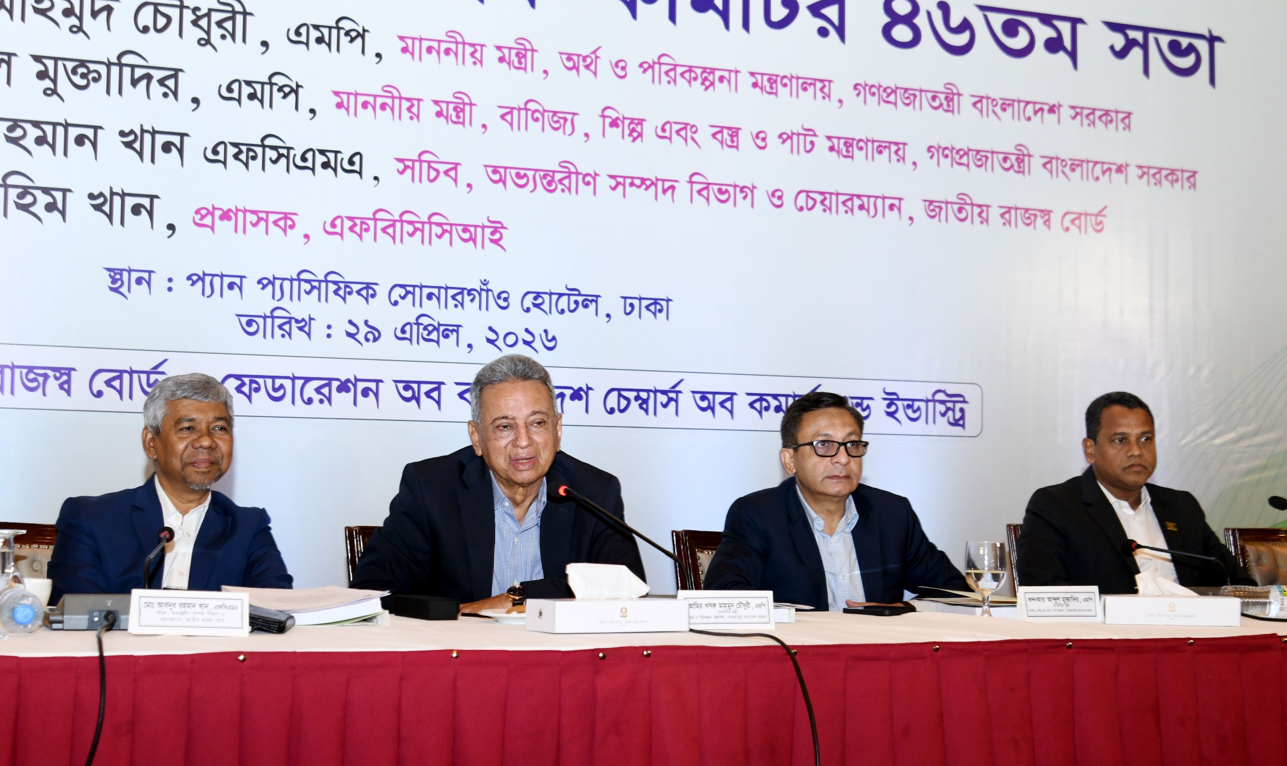 আজ বুধবার রাজধানীর প্যান প্যাসিফিক সোনারগাও হোটেলে জাতীয় রাজস্ব বোর্ড (এনবিআর) ও এফবিসিসিআই এর যৌথ উদ্যোগে আয়োজিত জাতীয় রাজস্ব বোর্ডের পরামর্শ কমিটির ৪৬ তম সভায় প্রধান অতিথির বক্তব্যে অর্থমন্ত্রী এসব কথা বলেন।