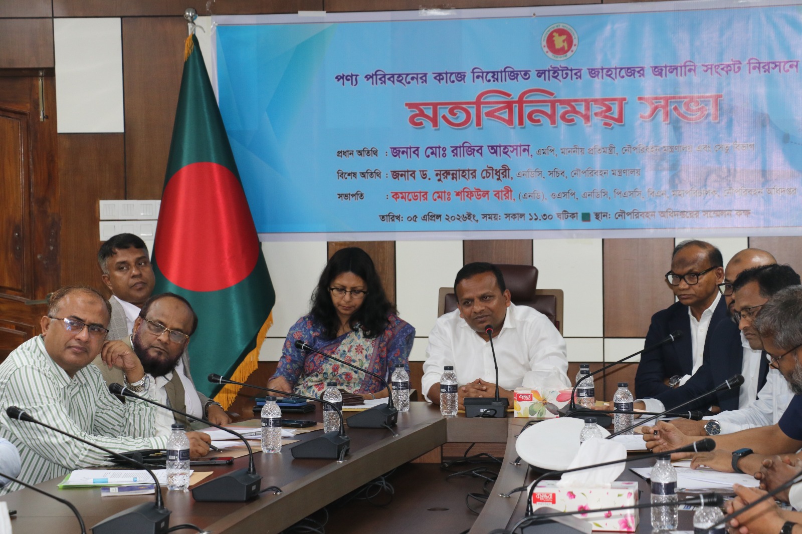 আজ রবিবার (৫ এপ্রিল) দুপুরে রাজধানীর আগারগাঁয়ে নৌপরিবহন অধিদপ্তরের প্রধান কার্যালয়ে পণ্য পরিবহনে নিয়োজিত লাইটার জাহাজসমূহের জ্বালানি সংকট নিরসন বিষয়ে আয়োজিত এক মতবিনিময় সভায় সভাপতির বক্তব্যে তিনি এসব কথা বলেন।
